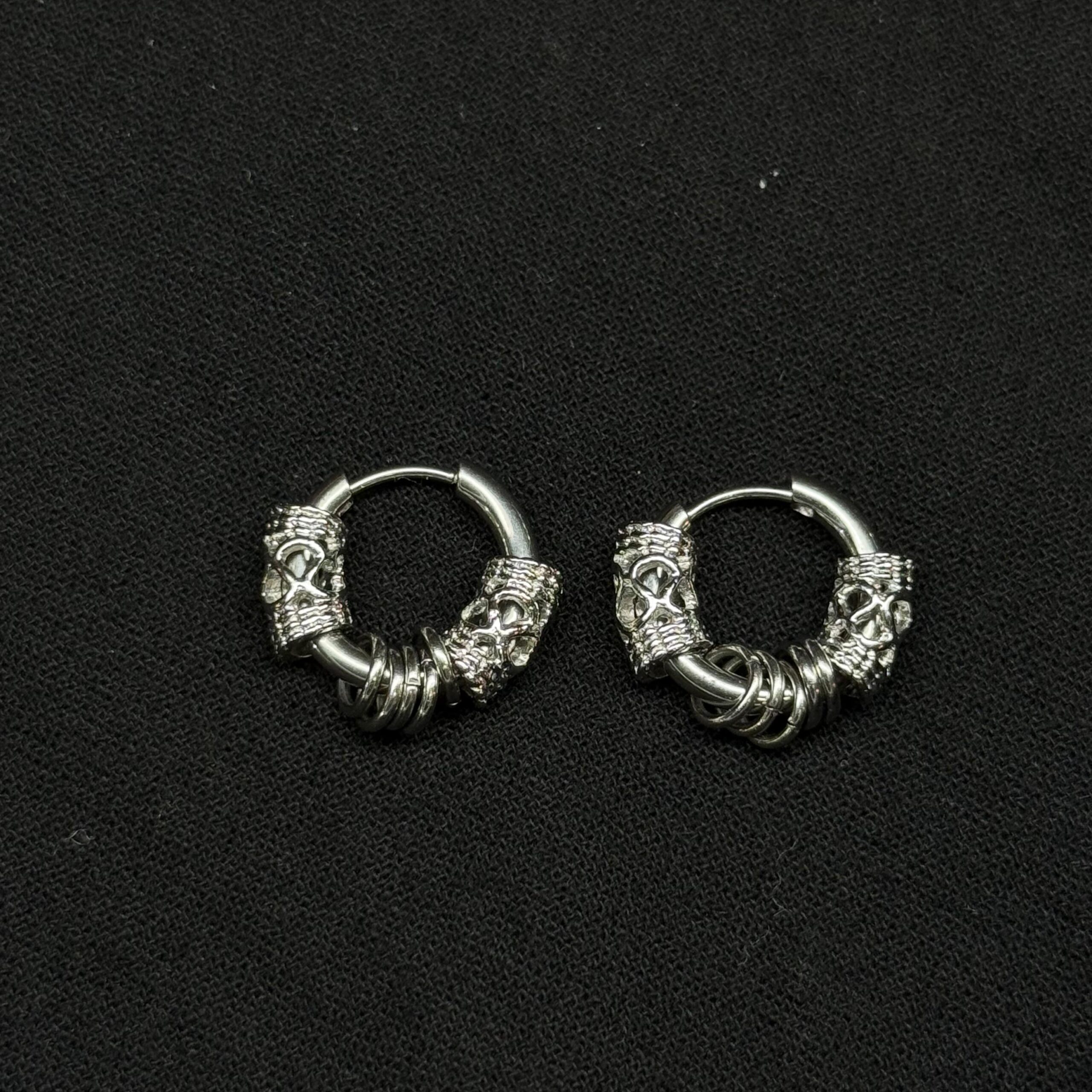 Aros tipo argolla con diseño tribal en relieve y detalles metálicos, fabricados en acero quirúrgico de alta calidad.
