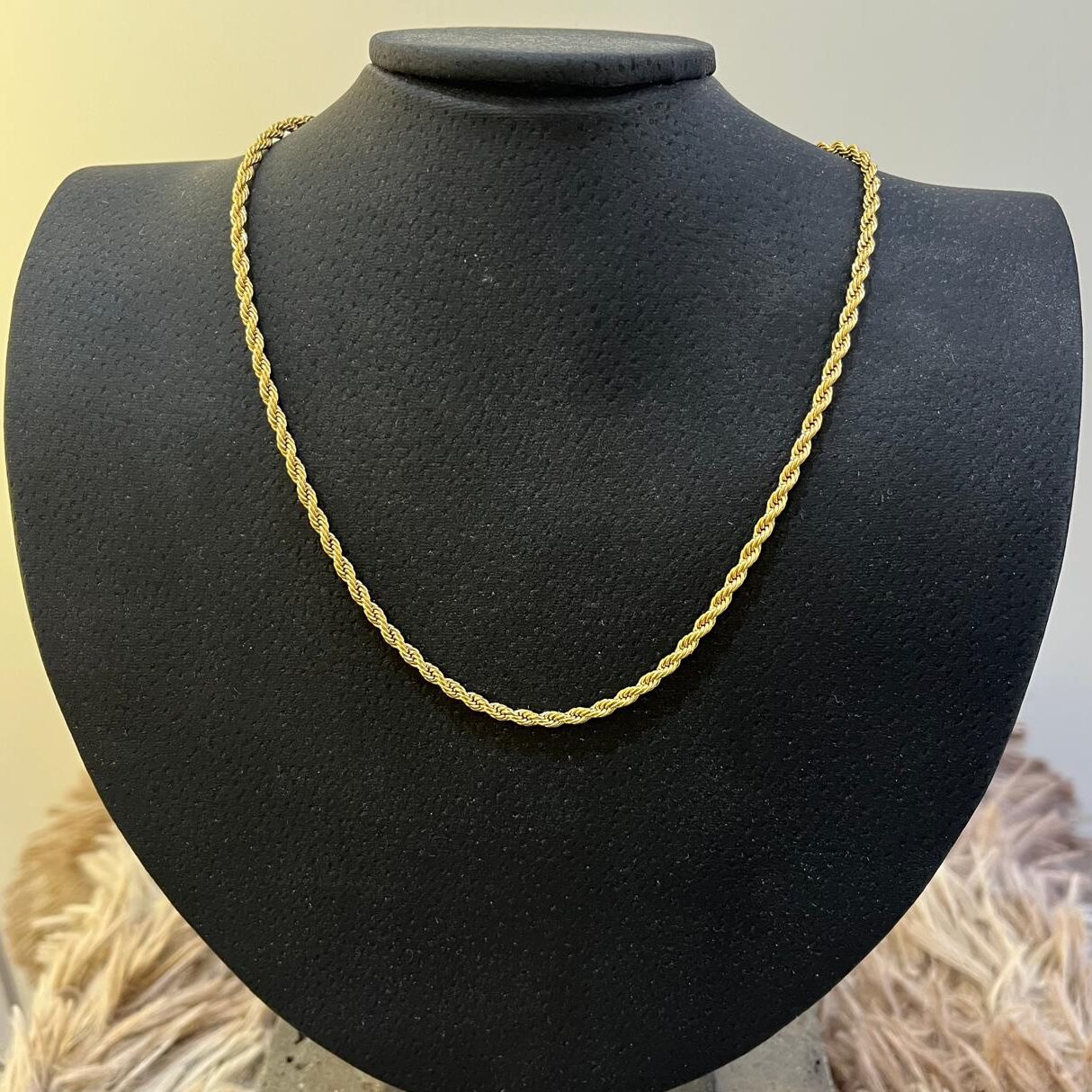 Diseño trenzado tipo soga con efecto torcido.