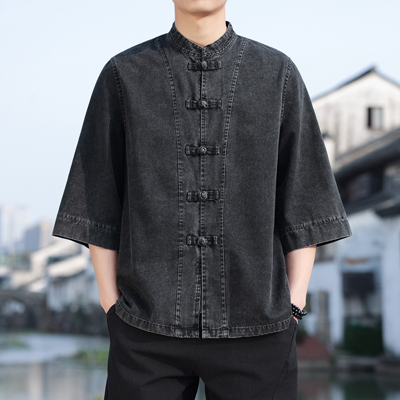 Chaqueta de jean oriental (estilo Tang) – denim lavado oscuro