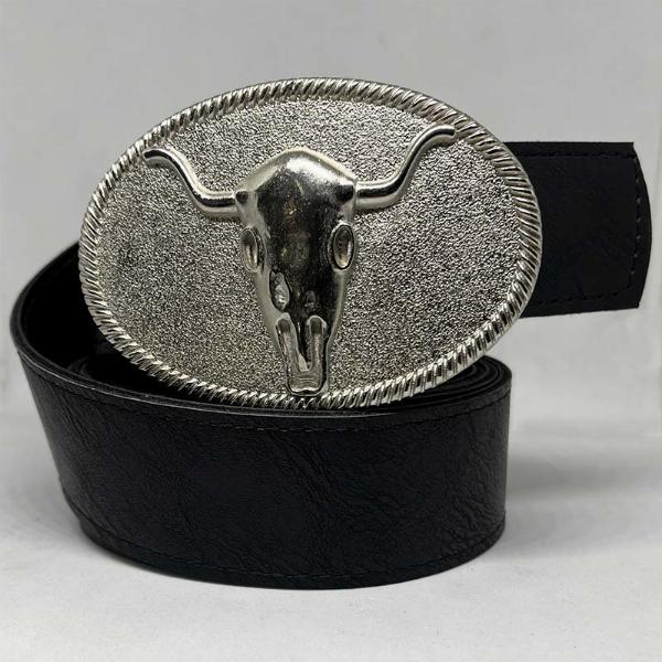 • Hebilla de aleación de zinc: calavera de toro (plata).