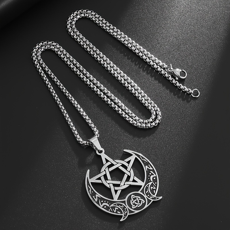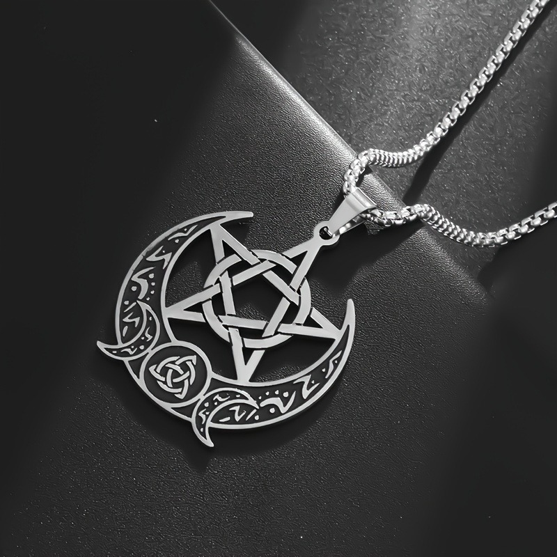 Sumale un toque místico y urbano a tu look con este collar de diseño luna creciente + pentagrama con detalle de nudo celta. Un accesorio llamativo, con terminación pulida y estilo dark/alternativo, ideal para usar todos los días o para regalar.
