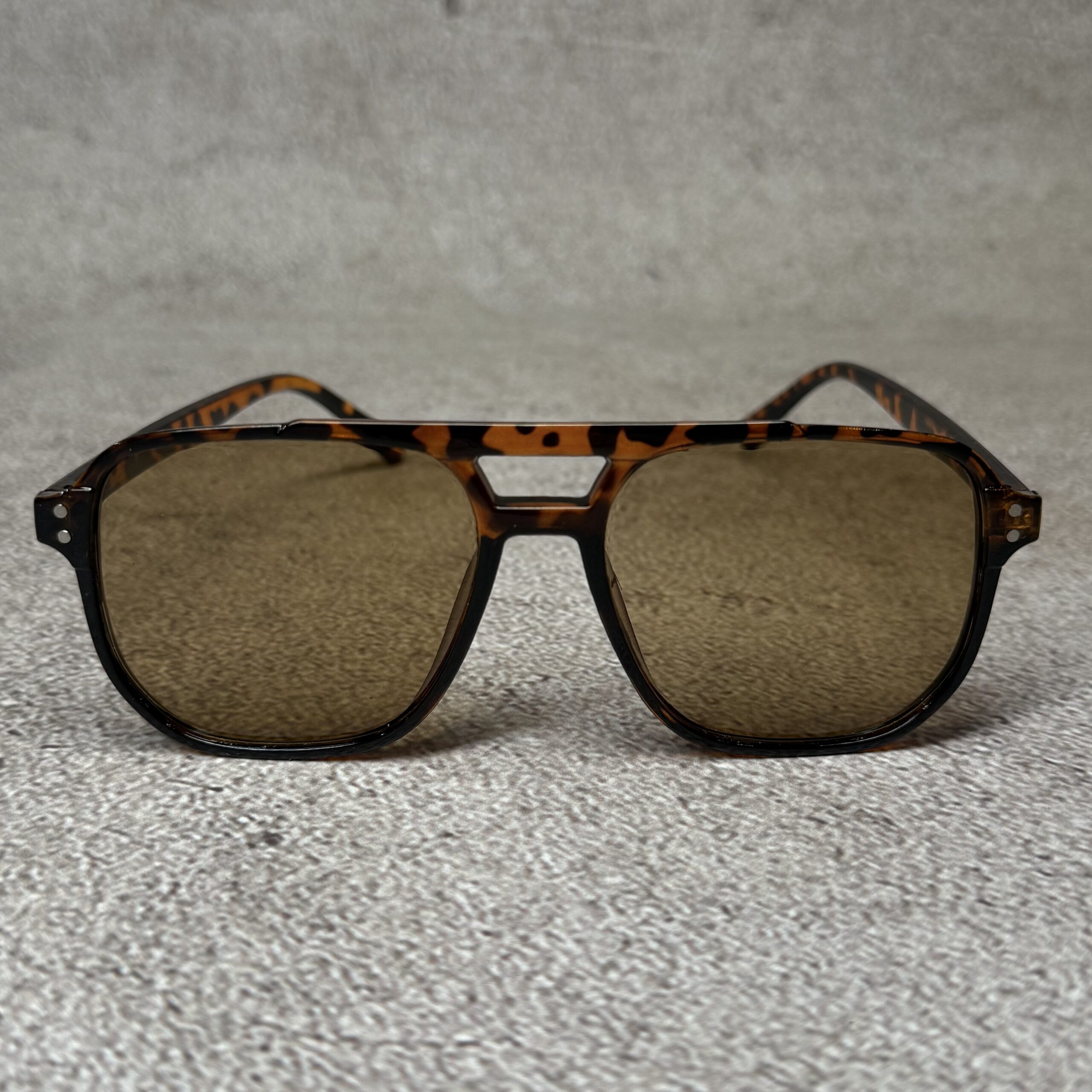 Gafas estilo aviador cuadrado. Marco animal print (carey) liviano. Lente color marrón. Unisex. Ideal para outfits urbanos y casuales.