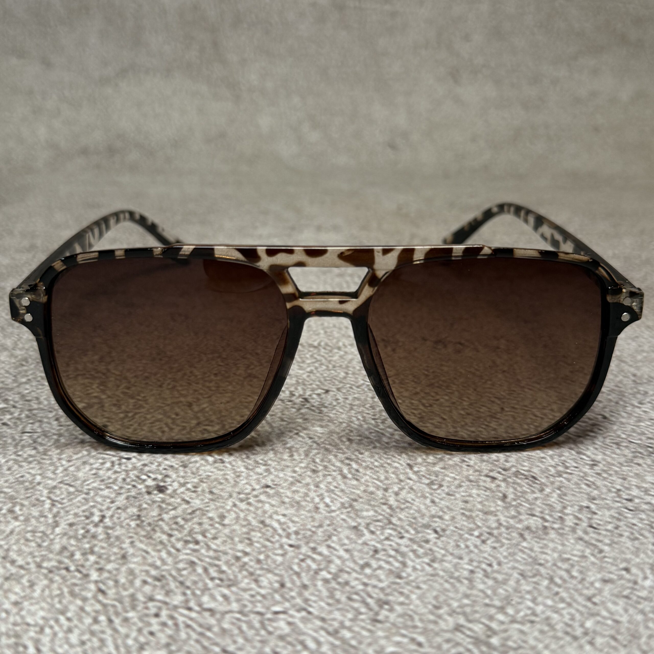 Gafas estilo aviador cuadrado. Marco carey liviano. Lente color marrón. Unisex. Ideal para un look clásico y urbano.