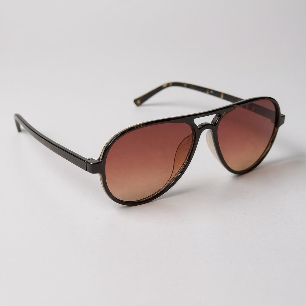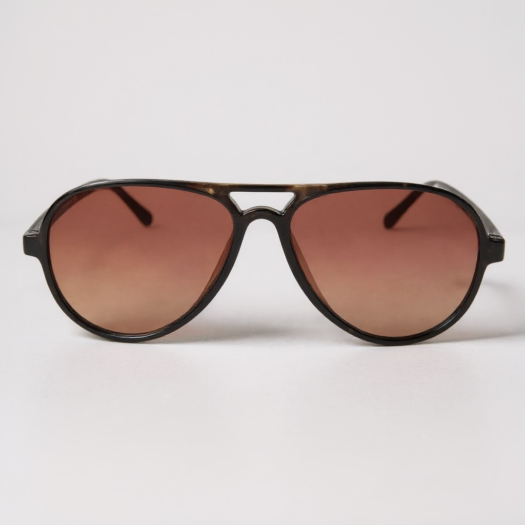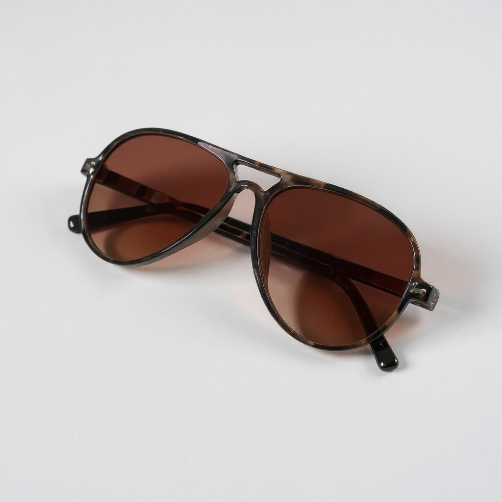 Gafas estilo aviador con marco plástico color carey y lentes marrones degradé. Diseño liviano y versátil, ideal para uso diario o looks más relajados.