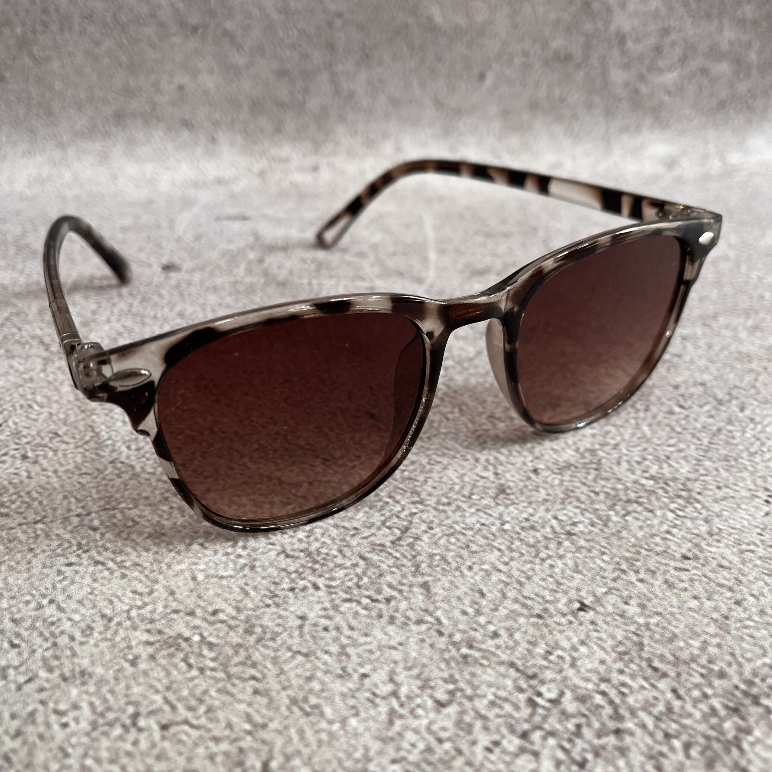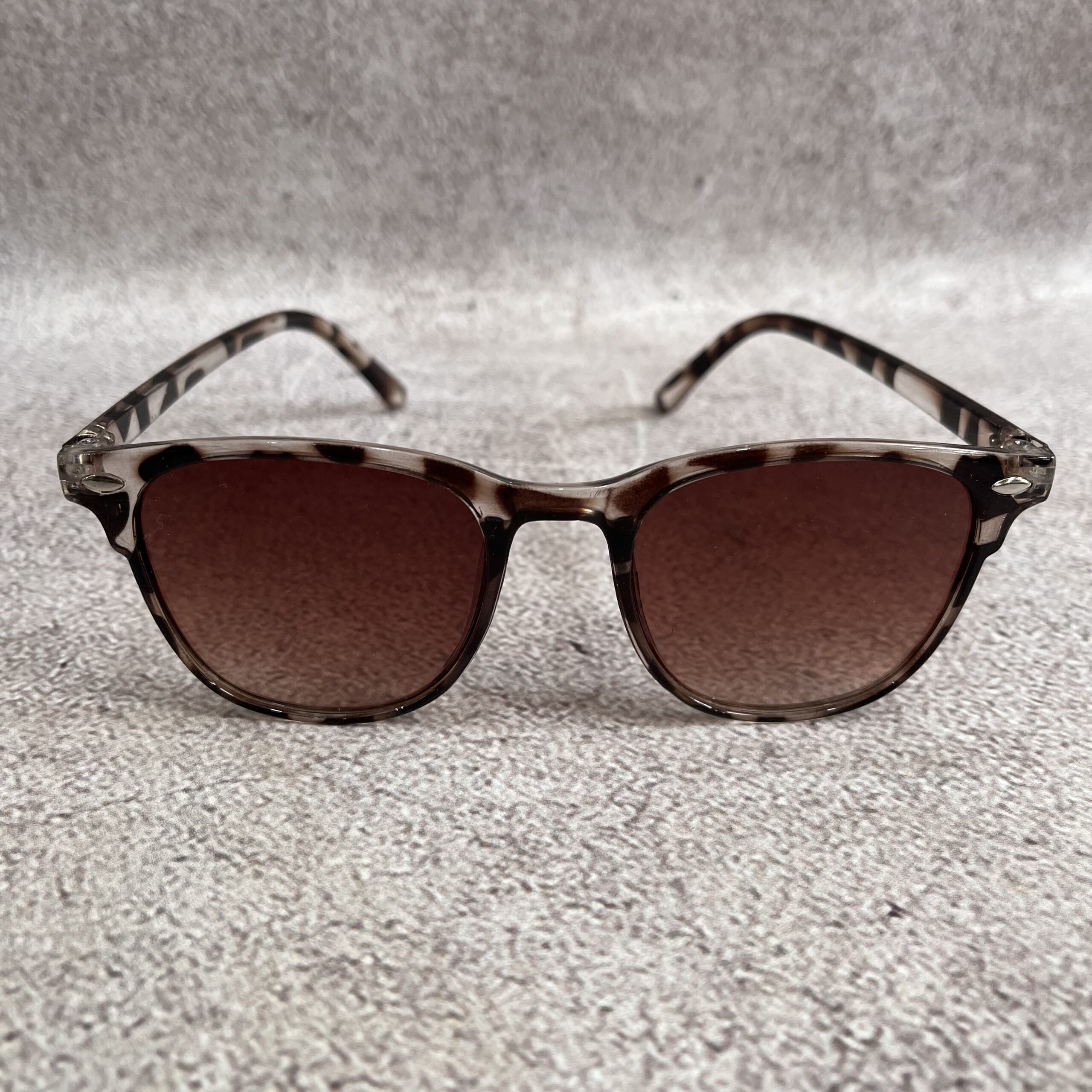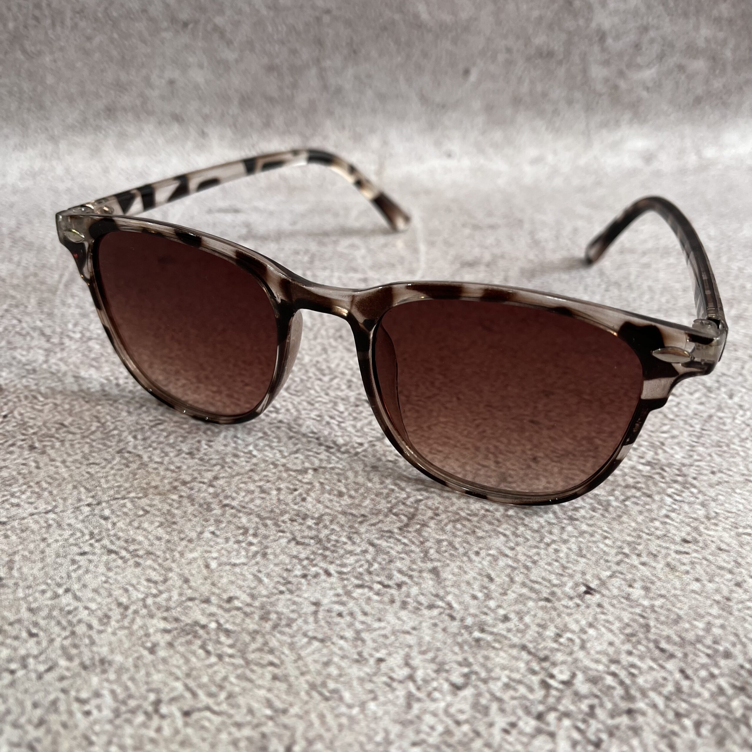 Lentes de diseño retro con marco carey gris y lente marrón . Hechas en policarbonato de alta resistencia, fusionan comodidad y un estilo clásico que nunca pasa de moda. Perfectas para un look urbano con un toque vintage.