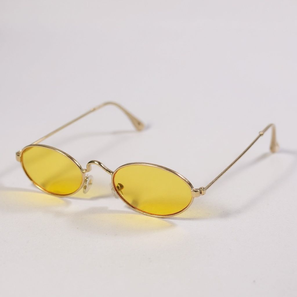Gafas de estilo ovalado con marco metálico y lente amarillo. Perfectas para looks urbanos, fiestas y contenido. No son para uso prolongado al sol.