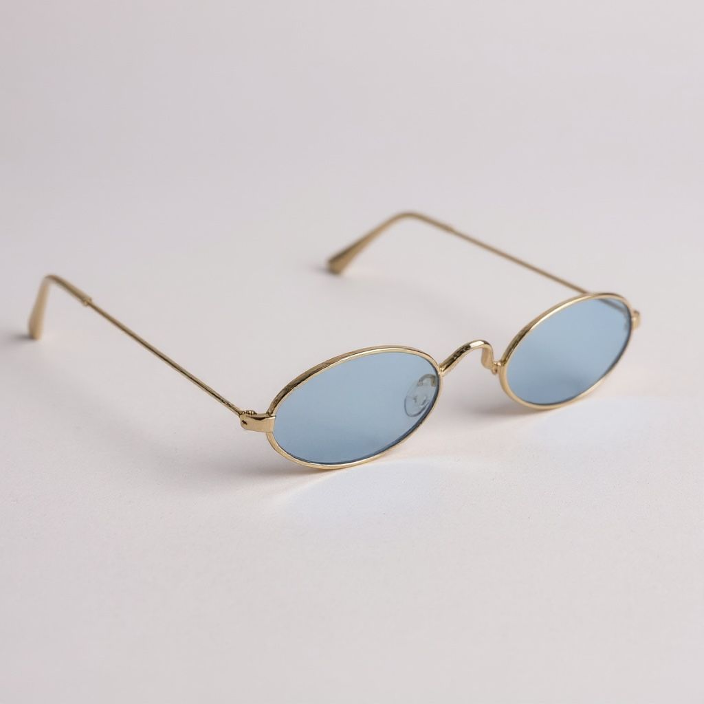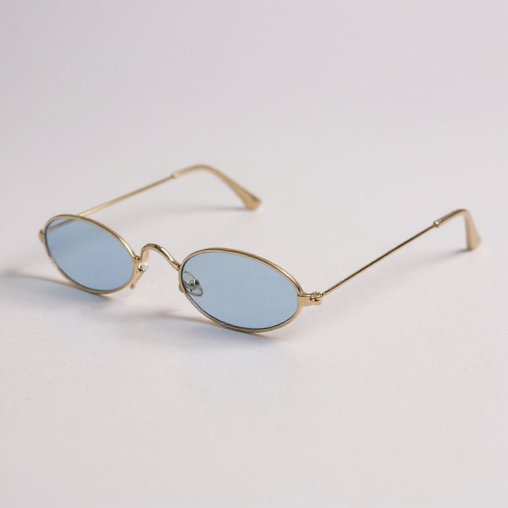 Gafas de estilo ovalado con marco metálico y lente celeste. Perfectas para looks urbanos, fiestas y contenido. No son para uso prolongado al sol.