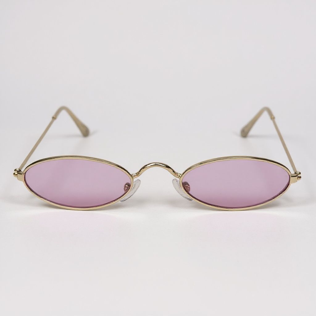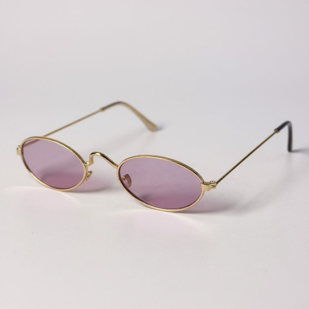 Gafas de estilo ovalado con marco metálico y lente lila. Perfectas para looks urbanos, fiestas y contenido. No son para uso prolongado al sol.