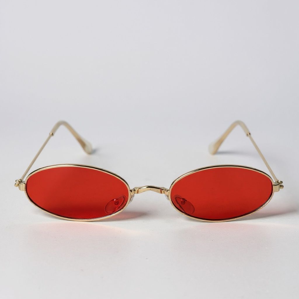 Gafas de estilo ovalado con marco metálico y lente rojo. Perfectas para looks urbanos, fiestas y contenido. No son para uso prolongado al sol.