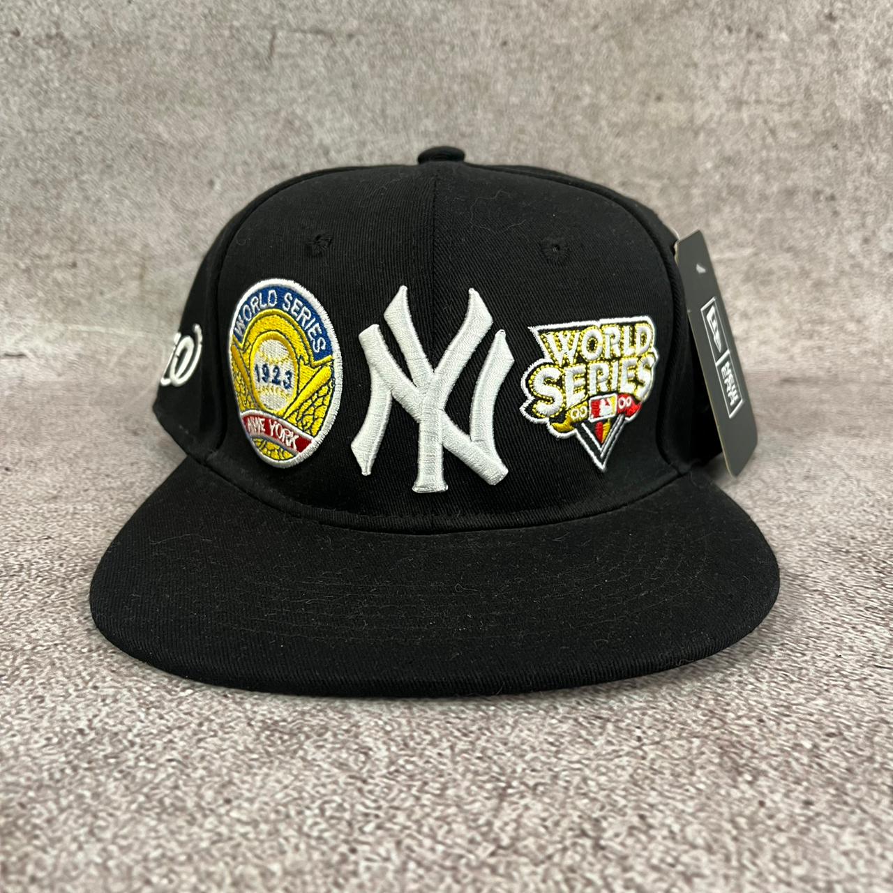 Gorra New Era original modelo 9FORTY Adjustable, en color negro con el clásico logo NY bordado en blanco al frente. Trae detalle frontal bordado “World Series- 1923 – Nwe York»” que la hace más coleccionable, y logo New Era bordado al costado. Ideal para look urbano / streetwear.