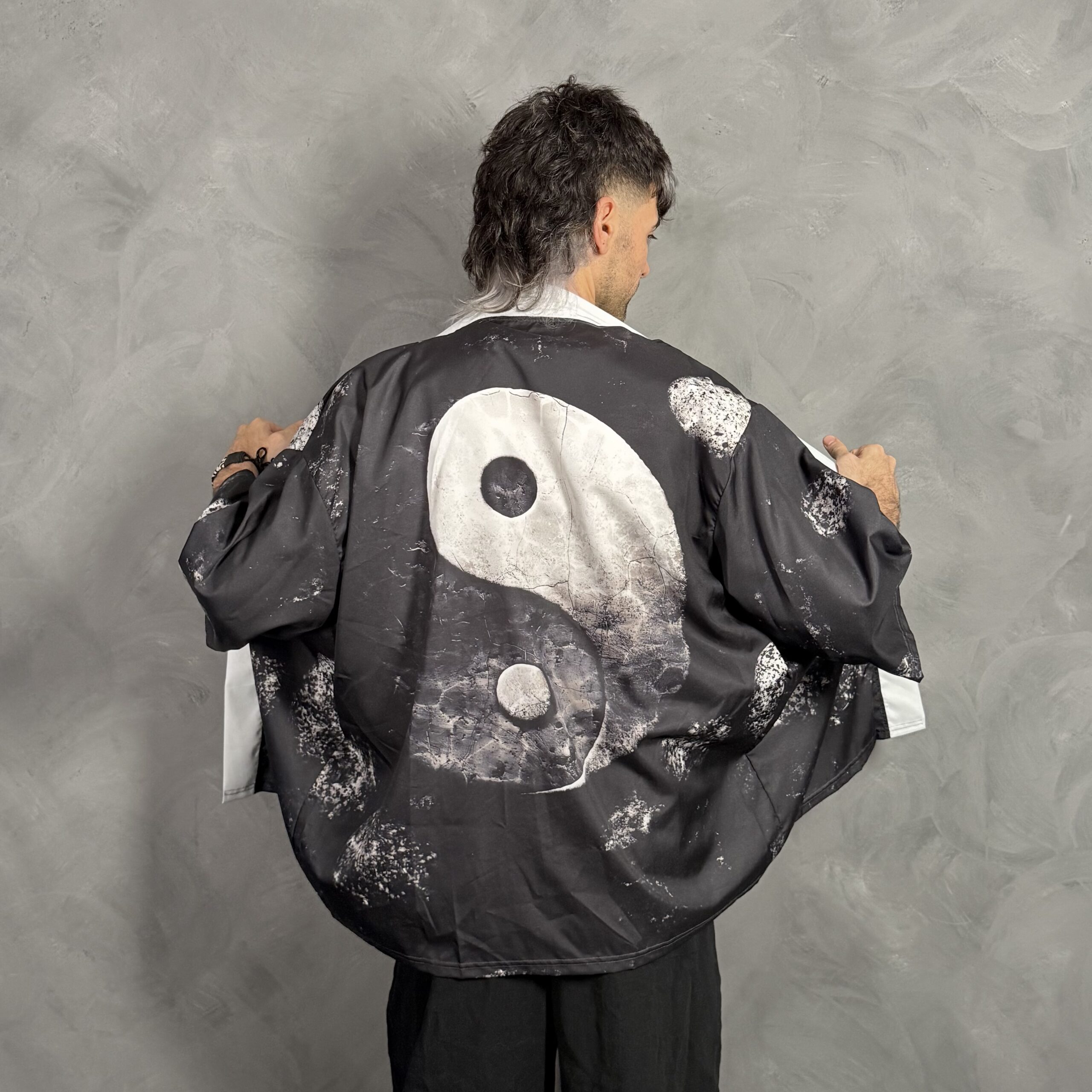 Gran símbolo de dualidad en la espalda, estilo desgastado