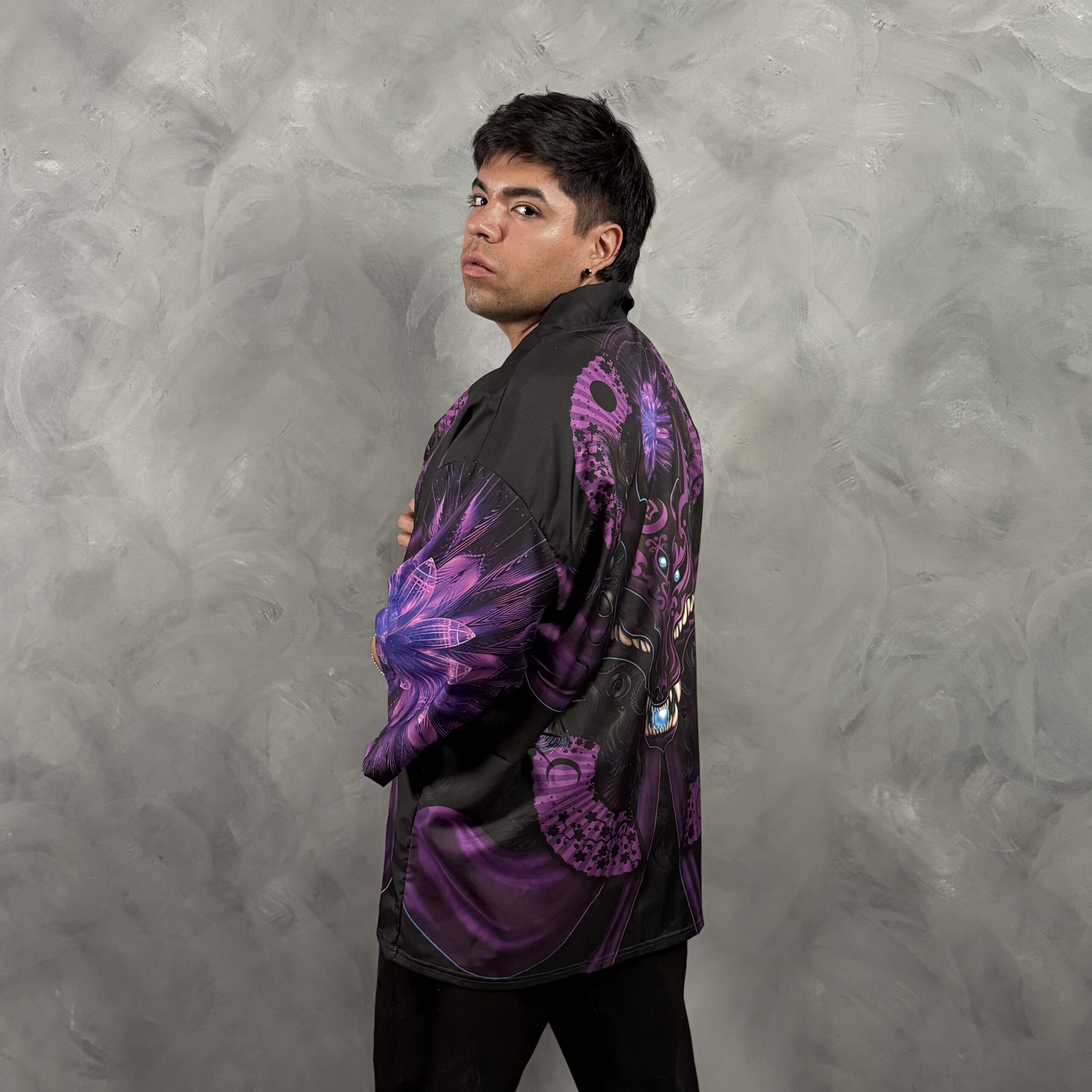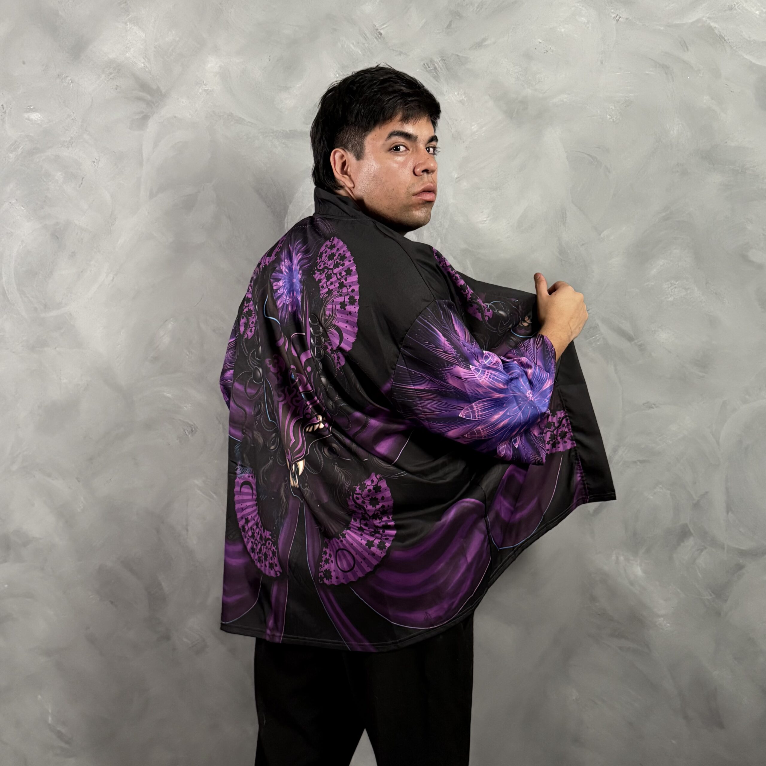 Haori oversize unisex con estampa full print de oni en la espalda.