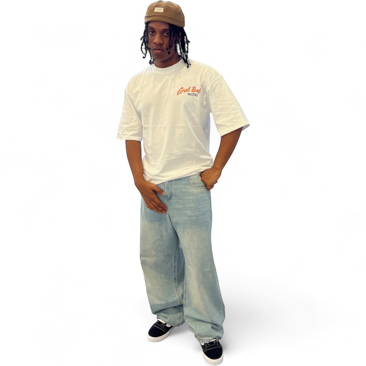 Confeccionado en Denim, con un calce Baggy, bolsillos traseros rectangulares estilo skater.