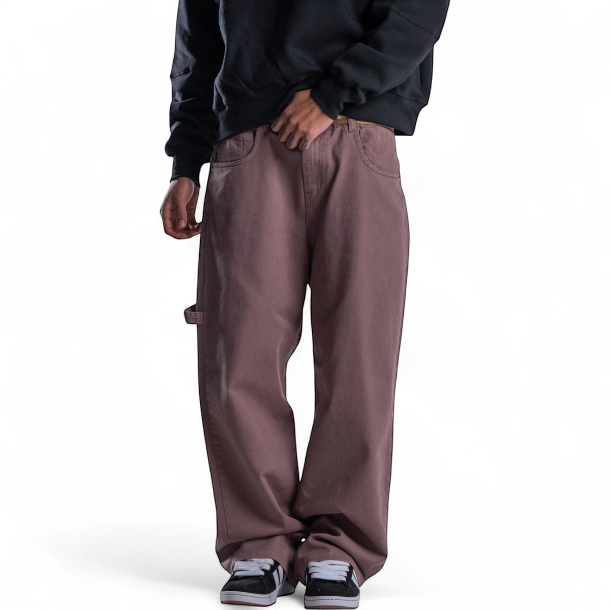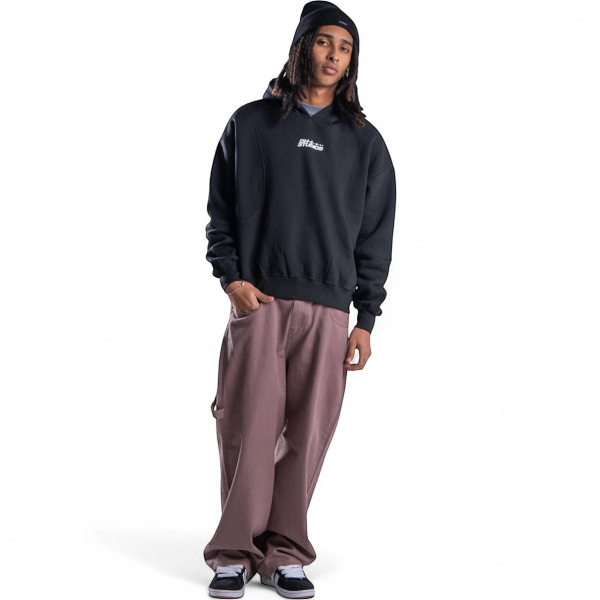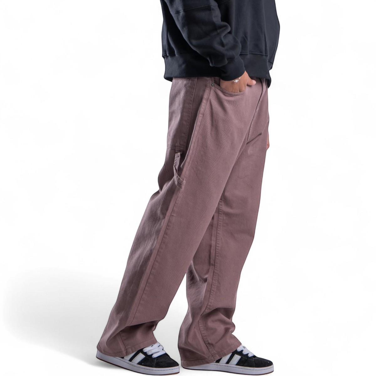 Confeccionado en Bull rigido, con un calce Baggy, bolsillos traseros rectangulares estilo skater, presilla lateral y un lavado sobreteñido gris acidwash.