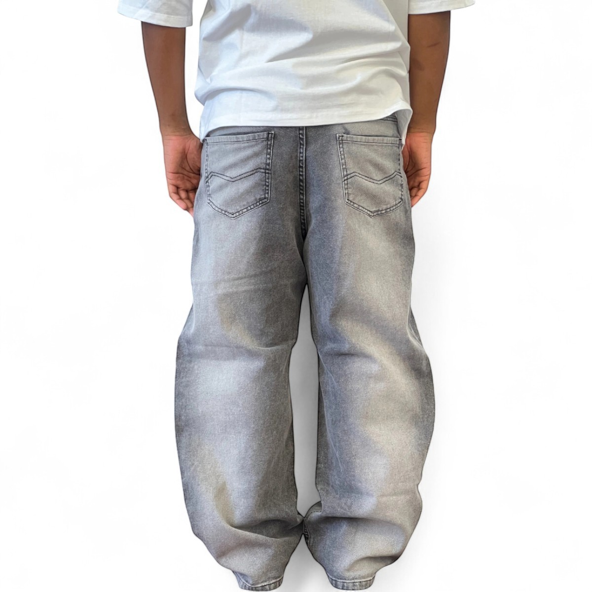Confeccionado en Denim, con un calce Baggy, cinco bolsillos clasicos y un efecto de desgaste suave.