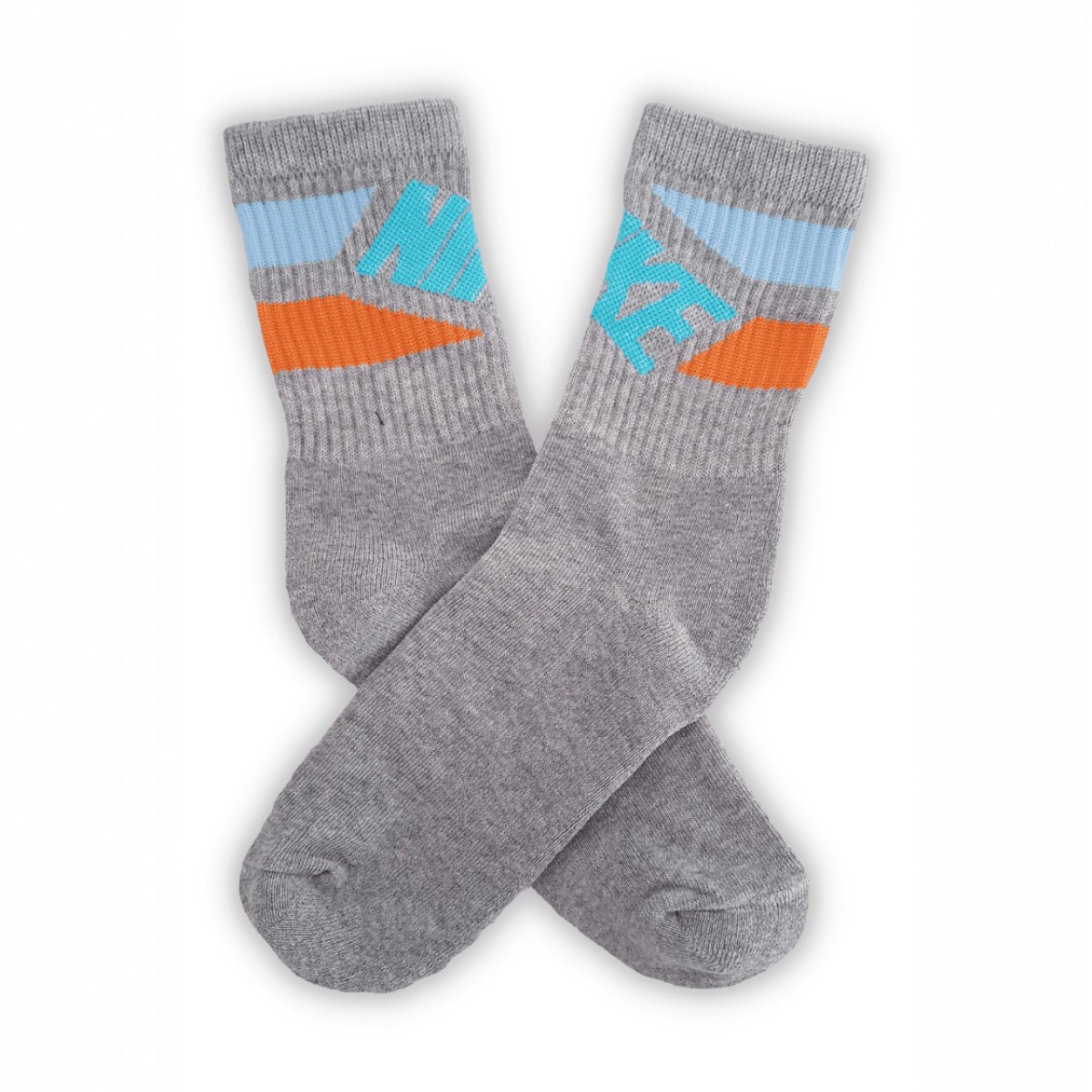 Medias grises con franja celeste y naranja Nike