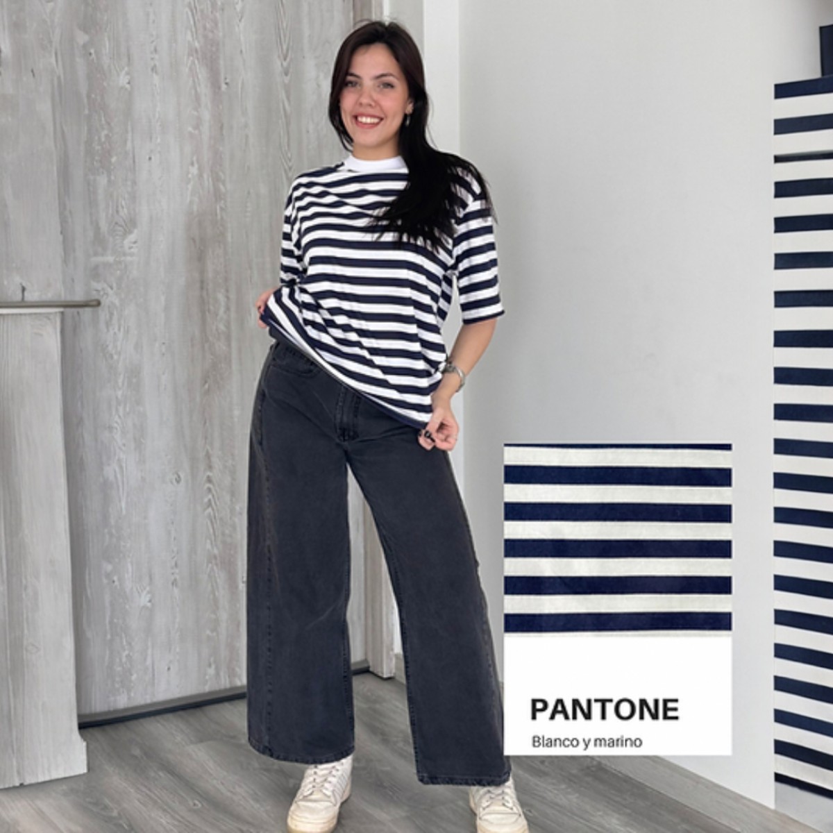Remera Boxy Fit Rayada Azul y Blanco